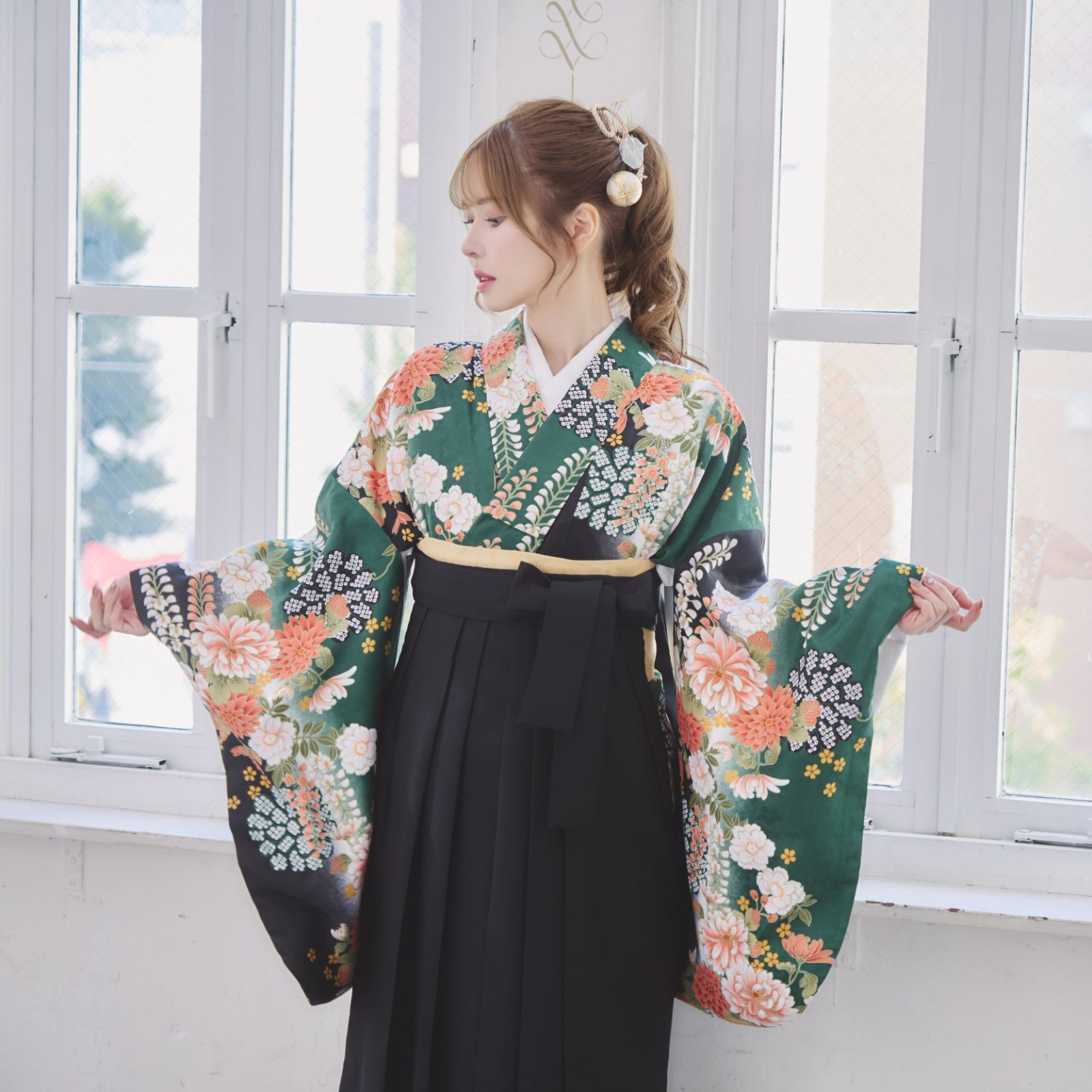 袴3点セット 卒業式 小学生 大学生 緑 グリーン 黒 45BK 袴セットの検索結果