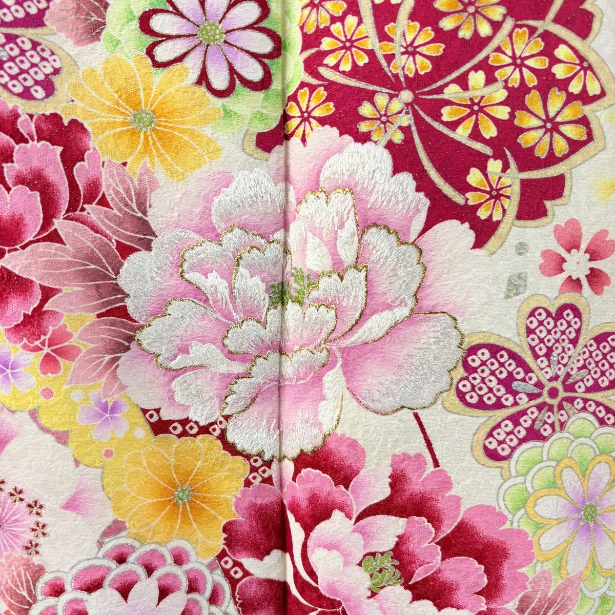 振袖 身丈165cm 裄丈67cm M 袷 牡丹 熨斗 箔 銀通し クリーム 正絹の検索結果