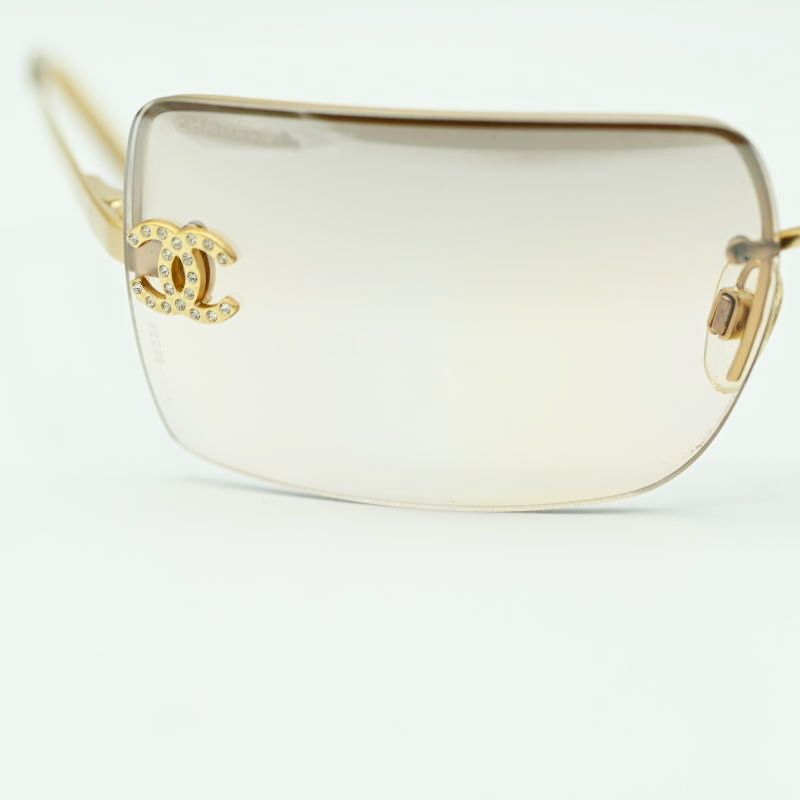 CHANEL シャネル サイドココマーク ラインストーン ハーフリム グラデーション サングラス 4092-B ゴールド ブラウン M10-k068 GLOBALQUALITYIMPORTS_COM