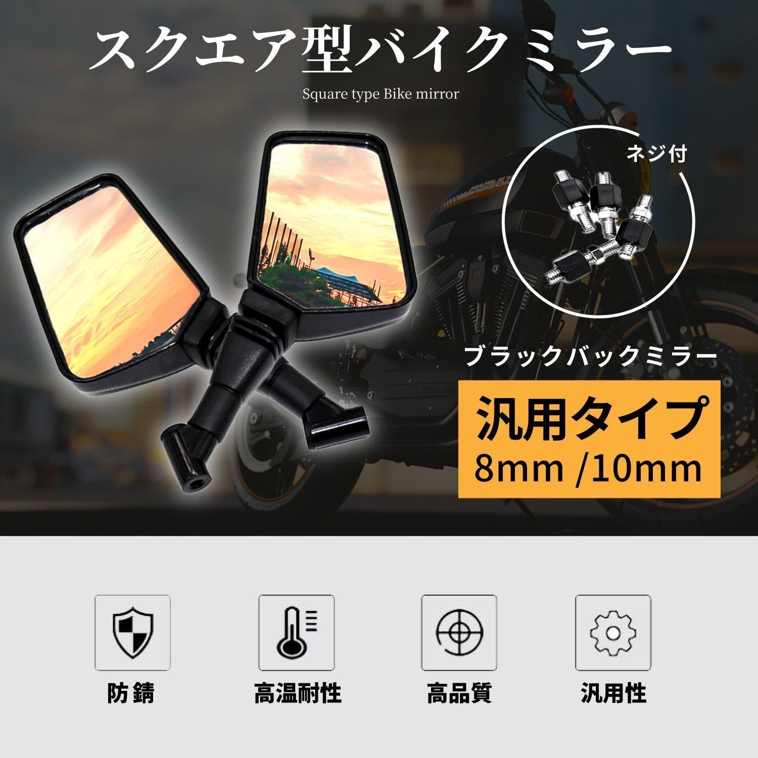 数量 サイド 鏡 原付 ハンドル オートバイ シルバー 左右セット 正ネジ バイクミラー 銀 汎用 10mm かっこいい 8mm 角型 四角 スクエア ミラー シルバー バイク karimの検索結果