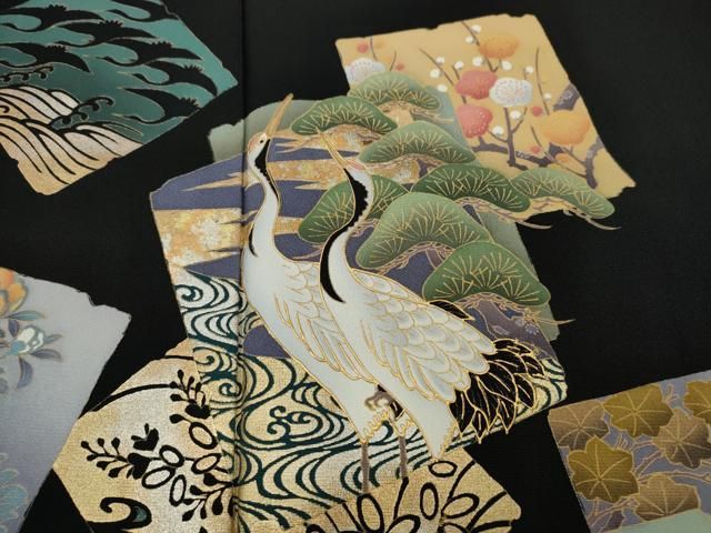 平和屋着物 豪華黒留袖 破れ色紙鶴草花文 金銀彩 正絹 CAAY5151utの検索結果