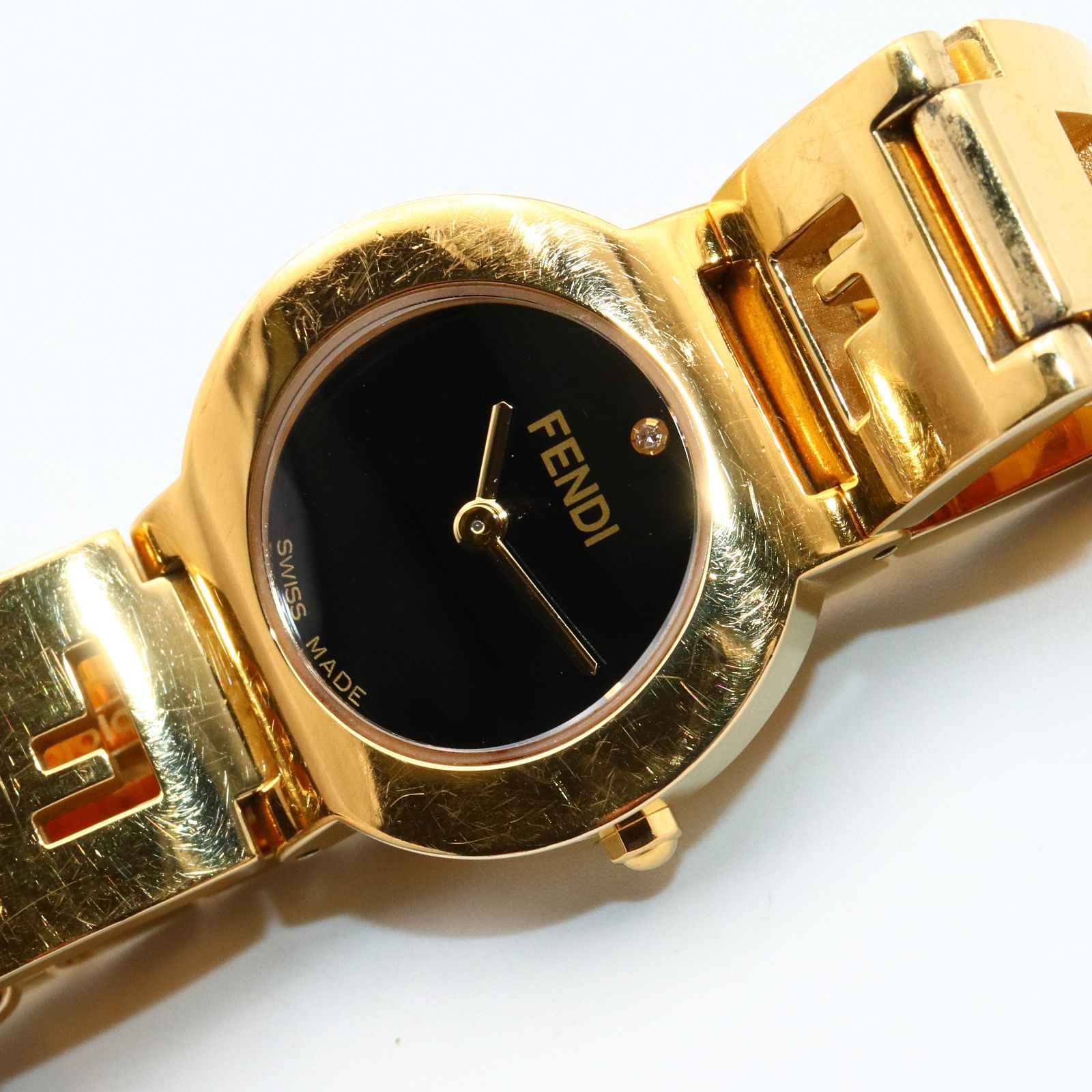 フェンディ FENDI 腕時計 ステラ 1Pダイヤ 3060L ブラック GP ゴールドメッキ ダイヤモンド ステラ 1Pダイヤ レディース Used A GLOBALQUALITYIMPORTS_COM