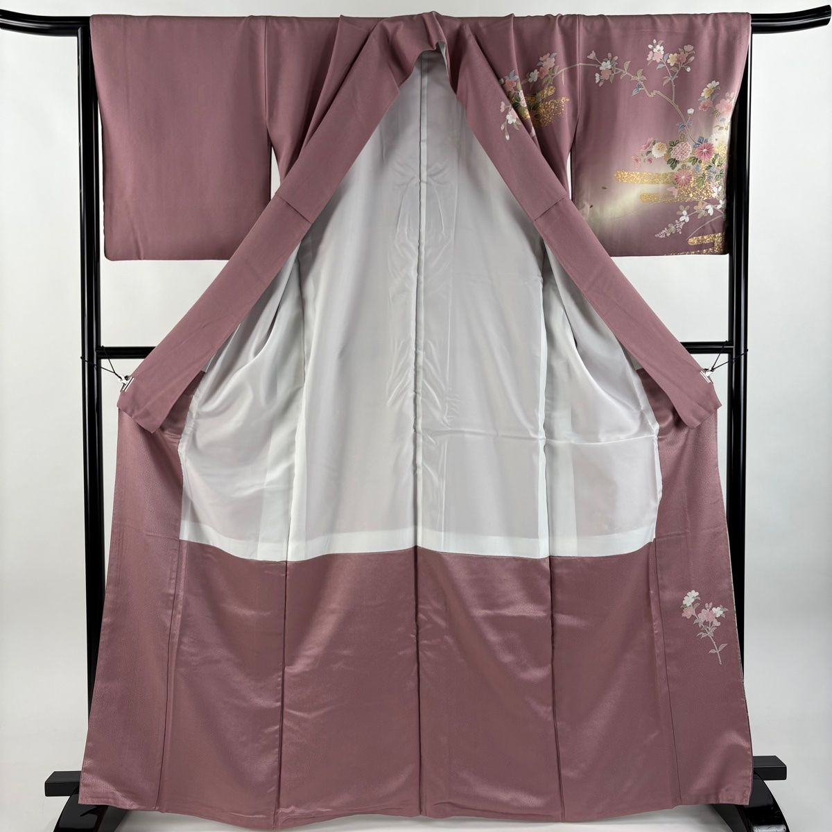 訪問着 身丈163cm 裄丈67cm M 袷 草花 金彩 ぼかし ピンク 正絹 秀品
