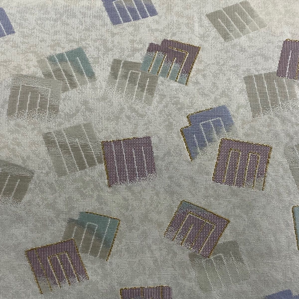 碁盤の目をモチーフにした落款が特徴で、伝統の手織りにこだわりのある織元「洛陽織物」の帯です。