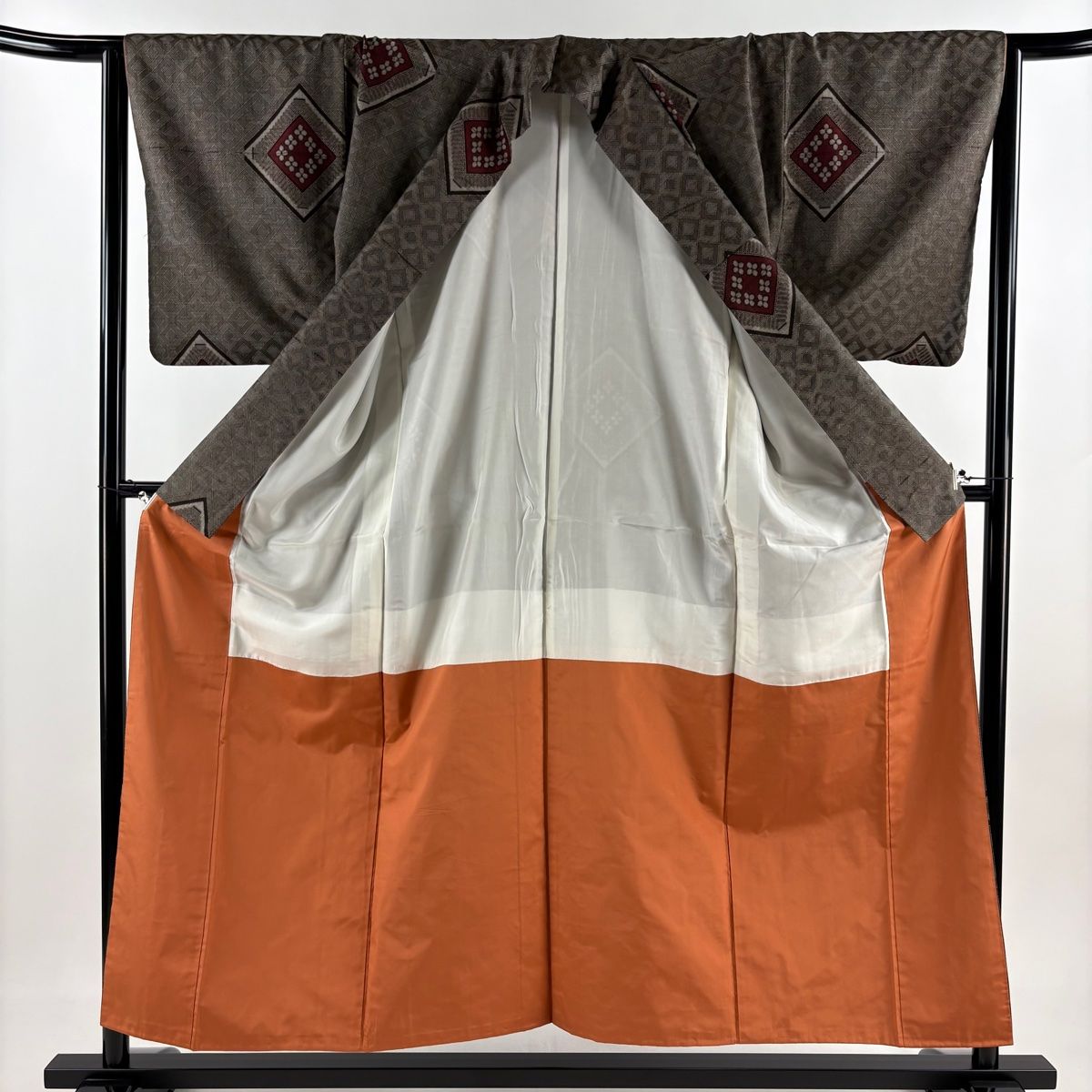紬 身丈155.5cm 裄丈64cm M 袷 菱 花 焦茶色 正絹の検索結果