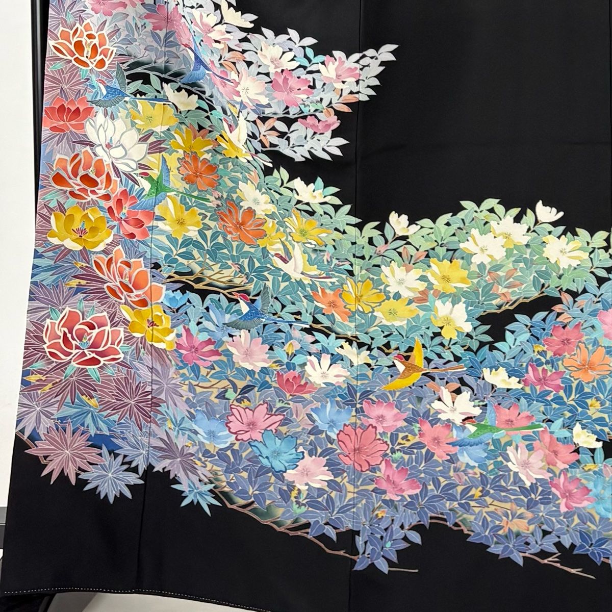 平和屋着物 本加賀友禅作家 百貫華峰 黒留袖 休み鳥草花文 暈し染め 正絹 CAAW7786yc