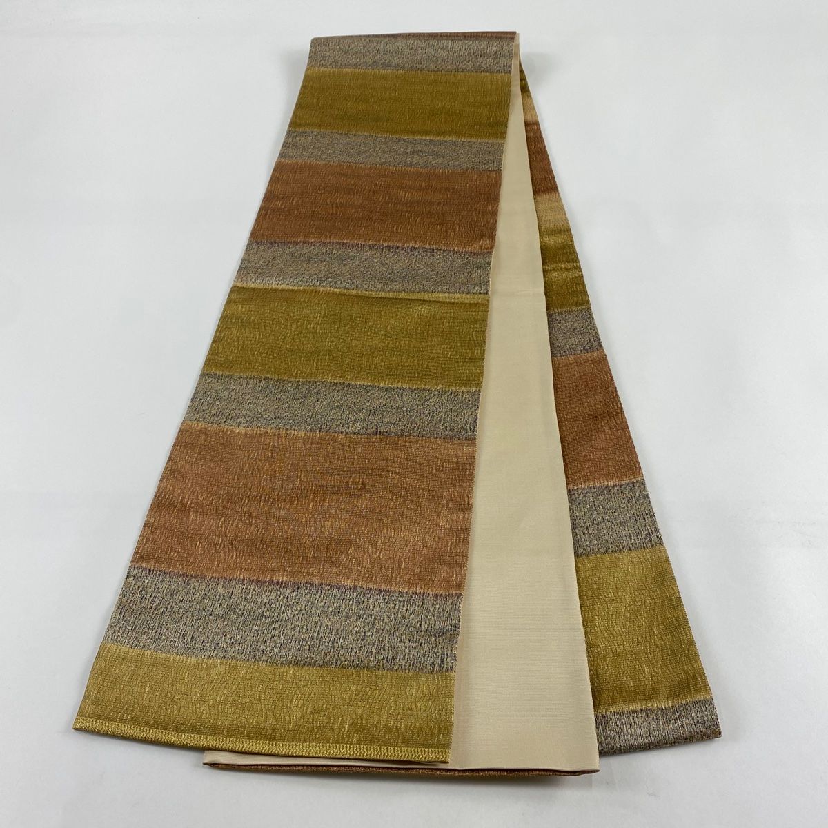 袋帯 秀品 落款 縞 幾何学模様 金糸 山吹色 全通 正絹の検索結果