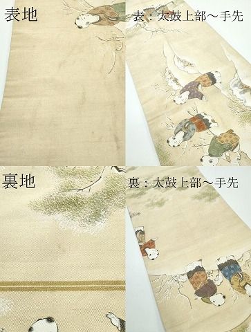 表地と裏地の太鼓上部から手先にかけて締め跡がございます。