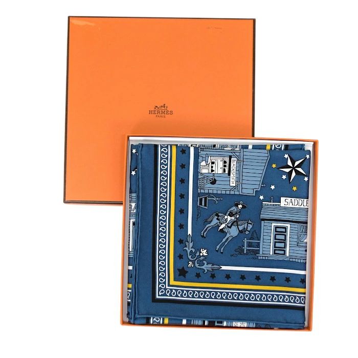 エルメス HERMES スカーフ カレ 55 シルク エルメス パリ ステーション Paris Station 駅 電車 馬 星 ブルーアルドワーズ ブルー ジョーヌ イエロー ノワール ブラック mbq22004 GLOBALQUALITYIMPORTS_COM