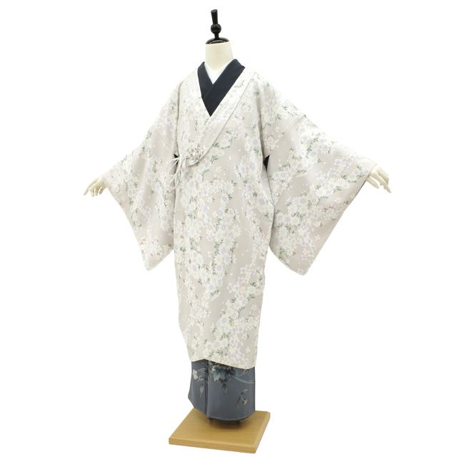 新古品 へちま衿 コート 袷 ペールグレー地 地紋 市松 菊 桜 花柄 草花 染め柄 エレガント かわいい お洒落 セミフォーマル カジュアル 新古品 仕立て上がり 身丈114 裄丈71 Lサイズ みやがわ sb16316の検索結果