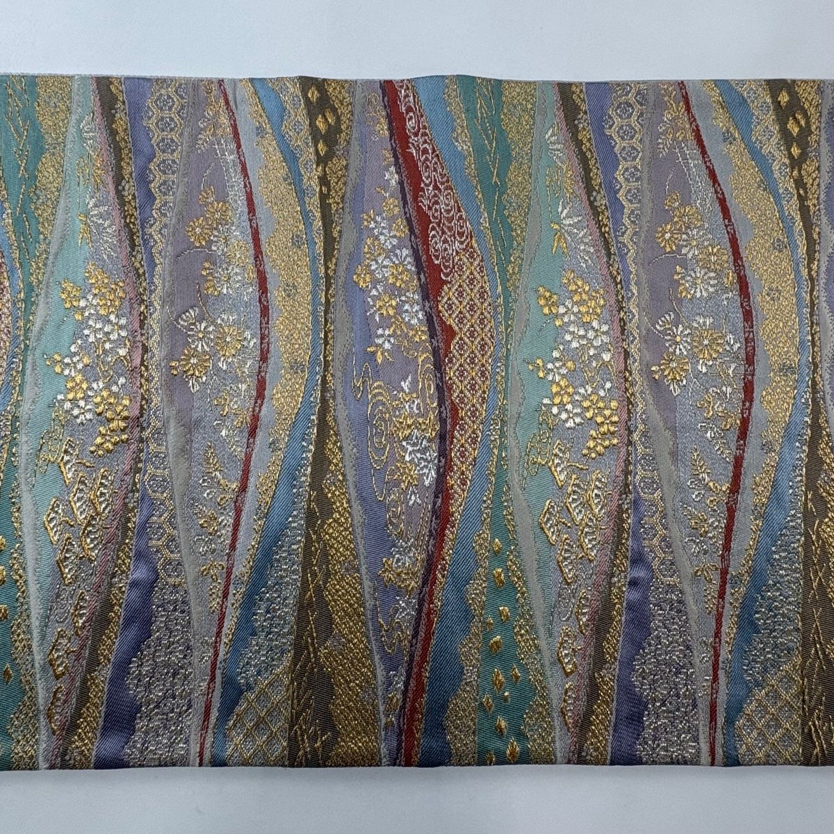袋帯 秀品 松竹梅 幾何学 金銀糸 薄緑 六通 正絹 GLOBALQUALITYIMPORTS_COM
