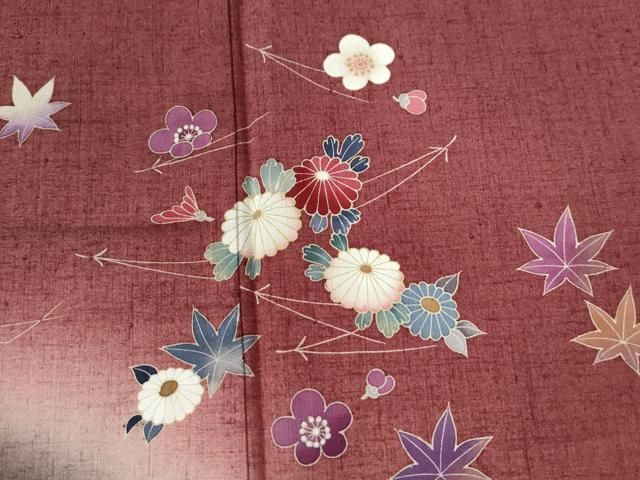 訪問着 身丈161cm 裄丈62.5cm S 袷 紬地 落款 鮫 宝尽くし 濃紫 正絹 秀品