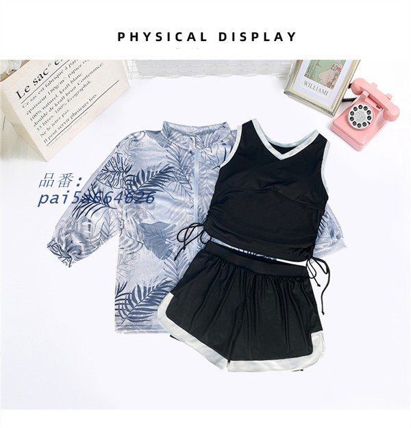 3点セット タンキニ 水着 レディース 体型カバー 長袖 女性用 韓国風 大人 短パン 水陸両用 インナーパンツ パッド付 ワイヤーなし pai5a664626 GLOBALQUALITYIMPORTS_COM