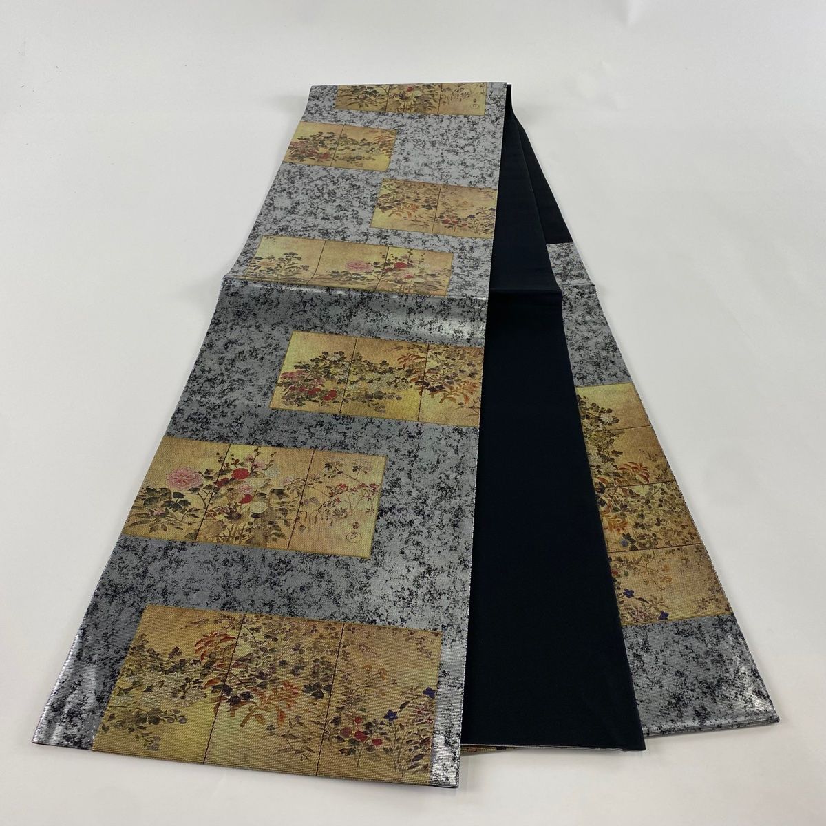 袋帯 秀品 草花 螺鈿 箔 銀色 六通 正絹の検索結果
