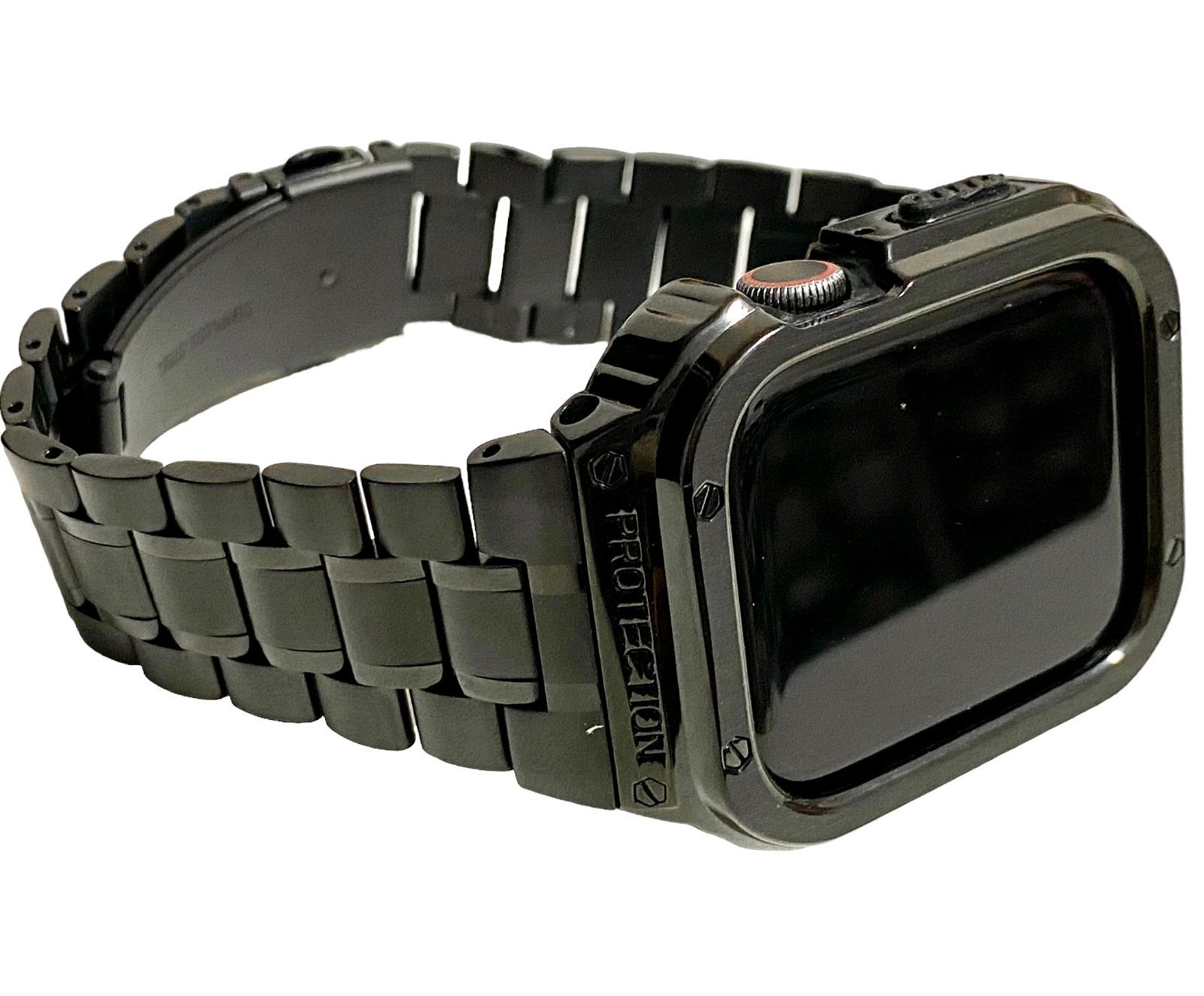 ブラック アップルウォッチバンド ステンレス カバー Apple Watch ケース 44mm 45mm メンズ レディース スポーツ 一体型 316L ステンレス GLOBALQUALITYIMPORTS_COM