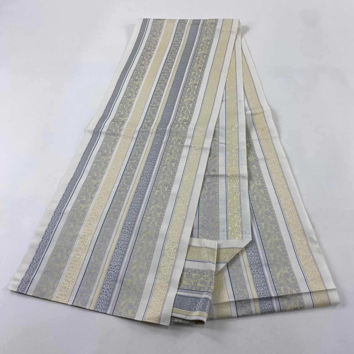 名古屋帯 八寸名古屋帯 松葉仕立て 草花 縞 クリーム 正絹の検索結果