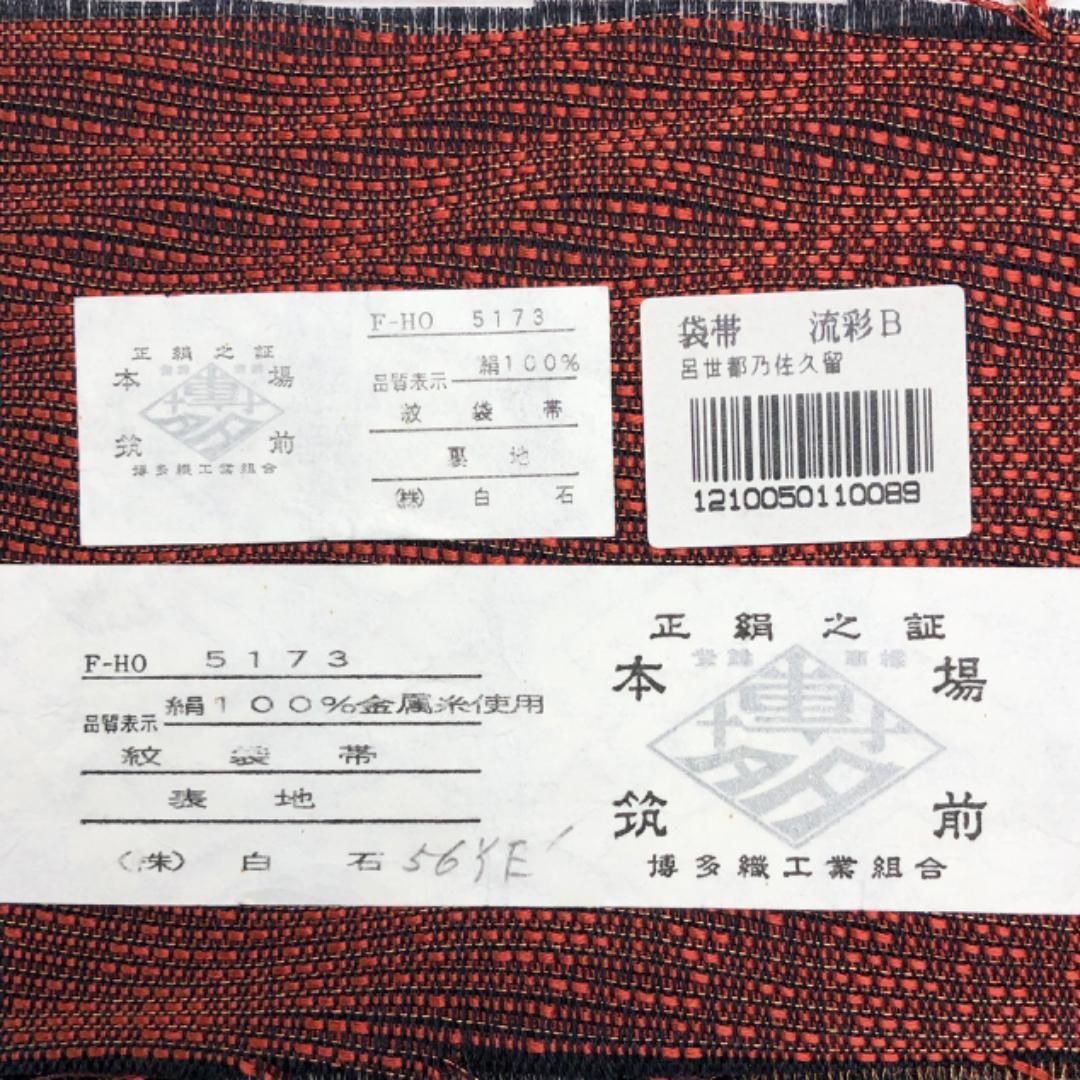 袋帯 本場筑前博多織 白石 証紙付 さつま色泥 流彩 深緋色 O-5635 GLOBALQUALITYIMPORTS_COM