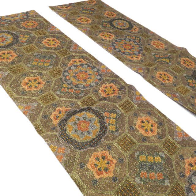 袋帯 正絹 フォーマル 六通 汕頭刺繍 スワトウ 中国刺繍 花模様 金通し 茶系色 多色 金 きもの北條 A1286-15 GLOBALQUALITYIMPORTS_COM