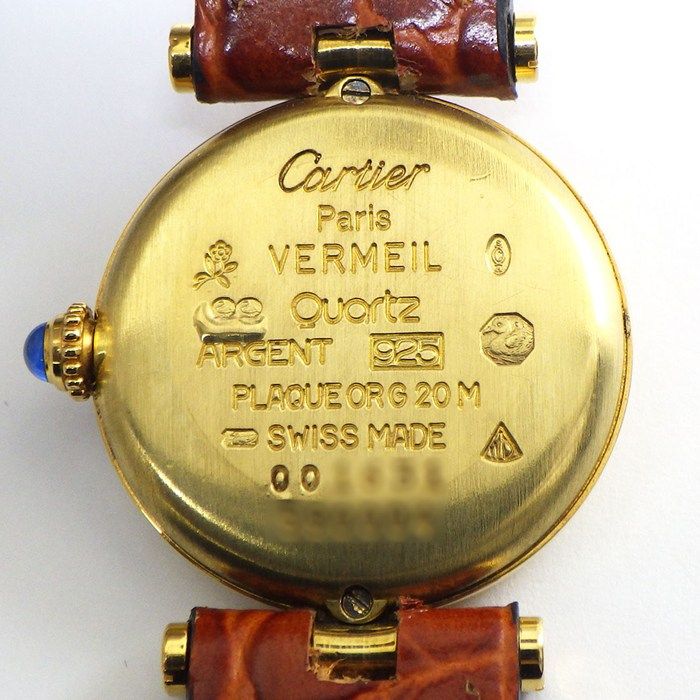 カルティエ Cartier 腕時計 マストヴァンドーム SM 590004 アイボリー文字盤 ローマンインデックス ブラウン カーフレザーベルト GP SV925 クオーツアナログ GLOBALQUALITYIMPORTS_COM