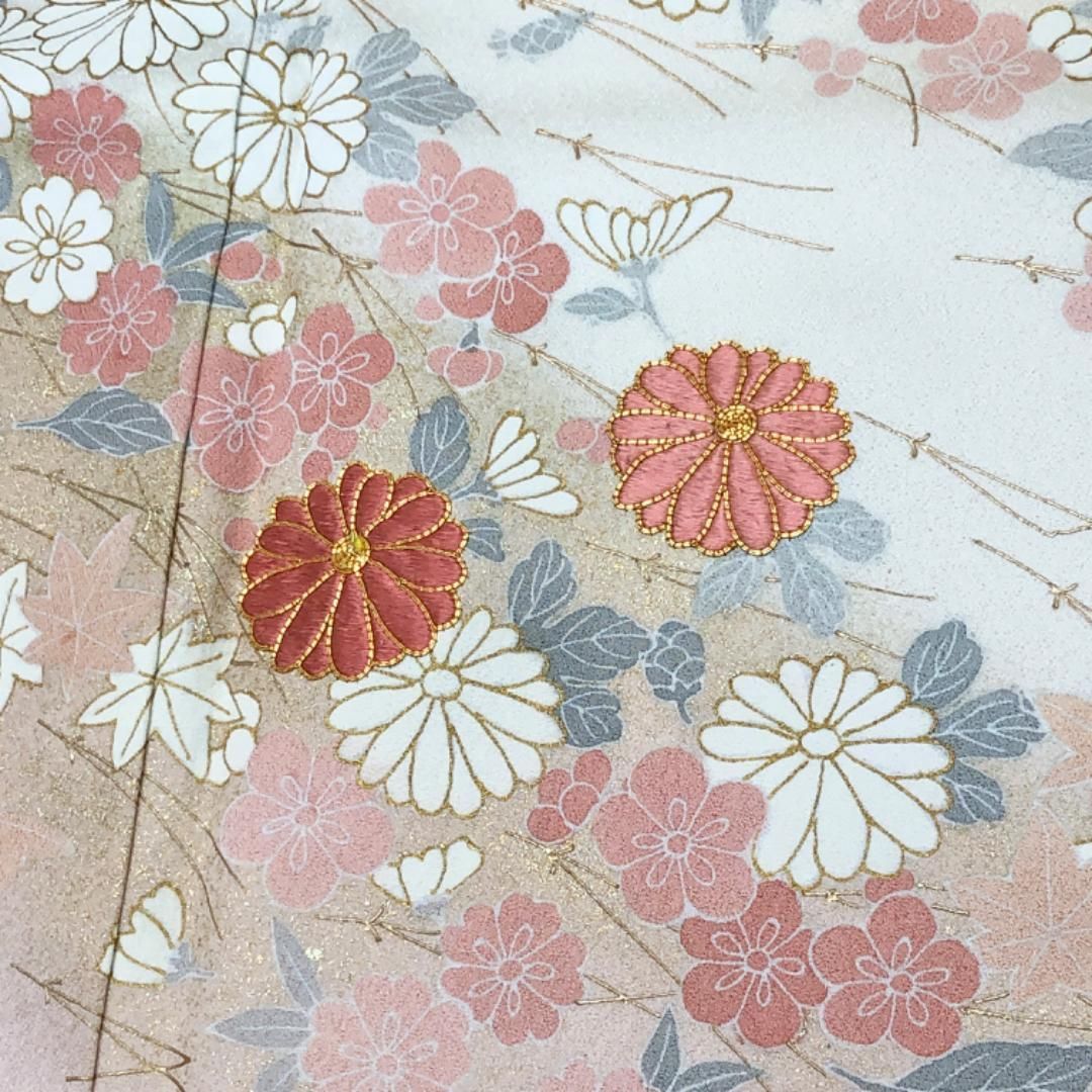 訪問着 美しい花模様 松葉 刺繍 金駒 ガード加工 金彩 麹色 K-5274の検索結果