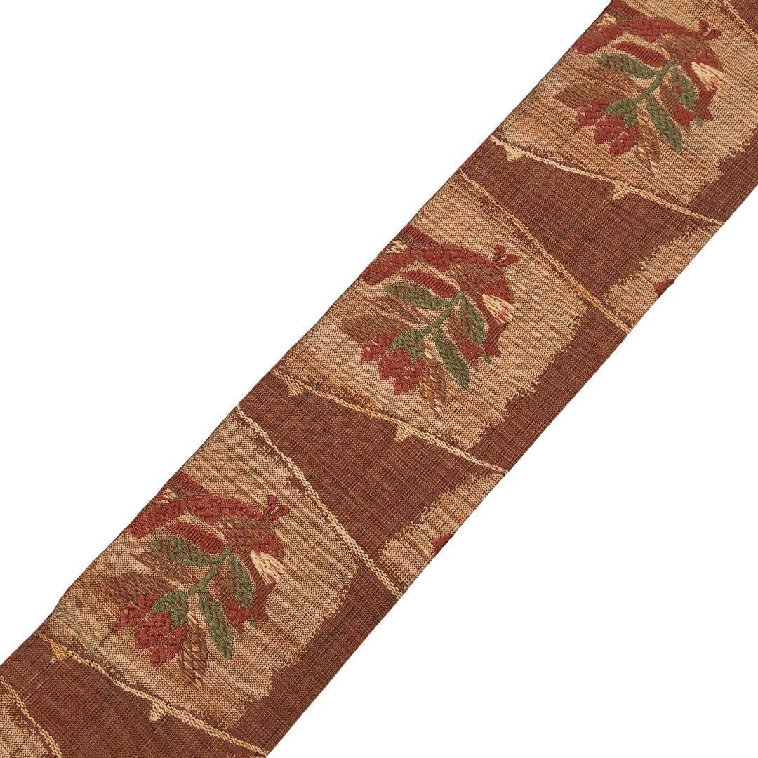 名古屋帯 紬 花模様 橙褐色 O-5565 GLOBALQUALITYIMPORTS_COM