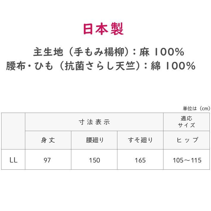 本麻手もみ楊柳 すそよけ ホワイト LLサイズ 肌着 襦袢 和装下着 麻 裾よけ komono-00114-03の検索結果