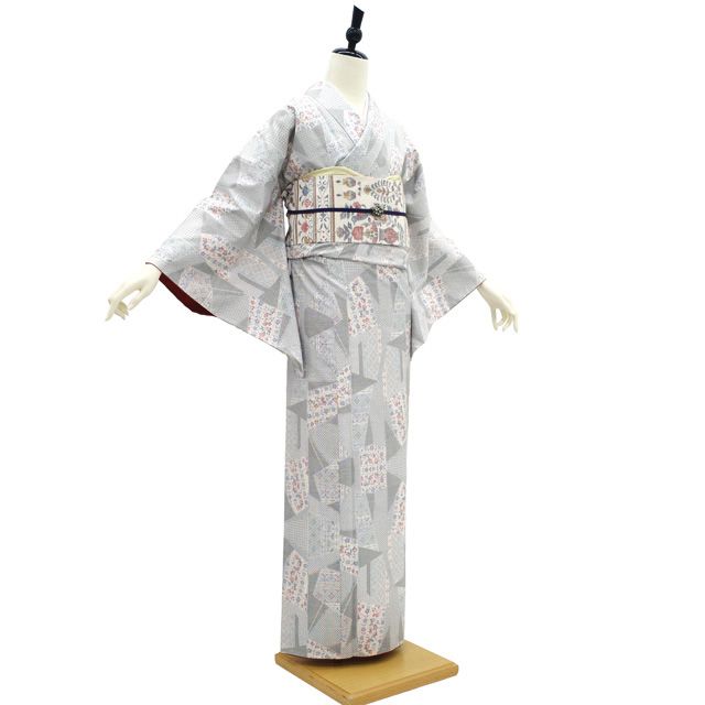 本場大島紬 都喜ヱ門 藤絹織物 着物 リサイクル 正絹 大島紬 白大島 7マルキ カタス式 白地 花更紗 花菱 寄せ柄 カジュアル 春 秋 冬 紬 着物 仕立て上がり 身丈159 裄丈66.5 Mサイズ みやがわ sb16456 GLOBALQUALITYIMPORTS_COM