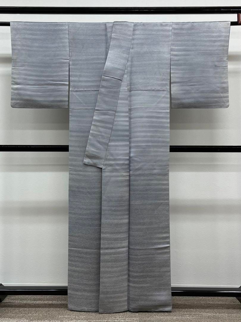小紋 身丈162.5cm 裄丈67cm M 袷 斉藤三才 落款 斜縞 幾何学模様 ぼかし 灰紫 正絹