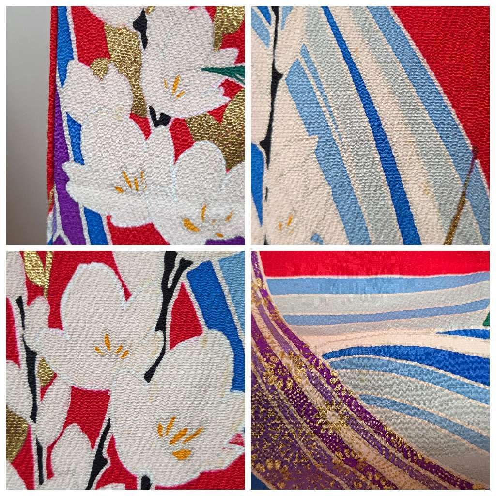 C 着物くつろぎ 作家物 レトロ 豪華 牡丹の花模様 金彩 縮緬 赤 正絹 引き摺り 振袖 着物の検索結果