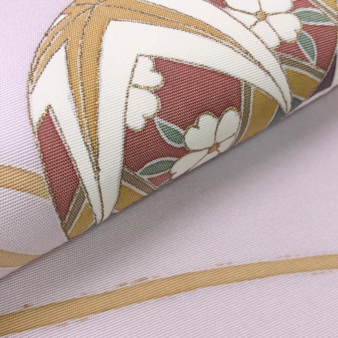 名古屋帯 塩瀬 手毬に花模様 白藤色 金彩 O-5607の検索結果