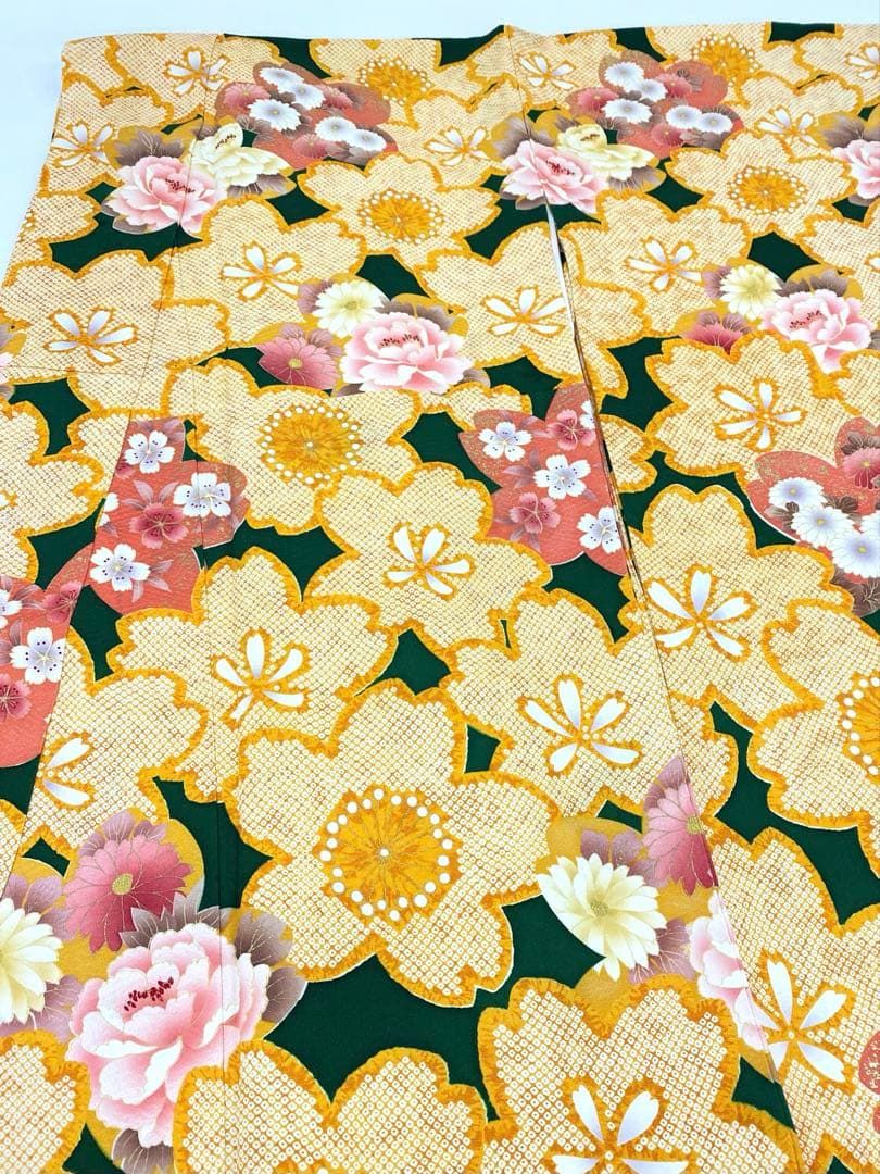 振袖 身丈156.5cm 裄丈63cm S 袷 桜 藤 金糸 金彩 山吹色 正絹 秀品