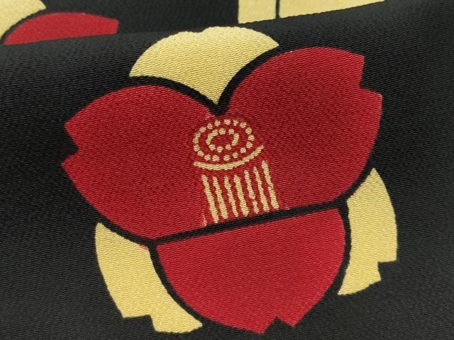 平和屋着物 上質な小紋 型染め 椿 黒地 鬼しぼ縮緬 正絹 CAAY3029vfの検索結果