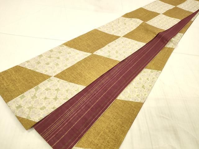 平和屋着物 両面 半幅帯 紬地 絞り 切嵌 舞花文 間道 正絹 DAAX8553cm GLOBALQUALITYIMPORTS_COM