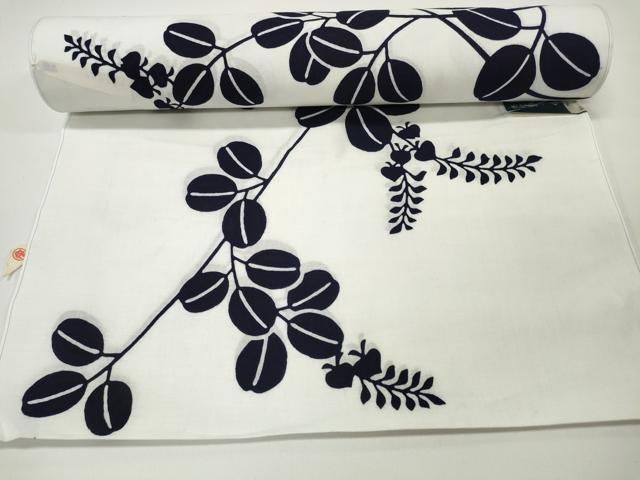 平和屋本店 夏物 竺仙鑑製 浴衣 反物 着尺 綿絽 草花 紺地 証紙付き 綿 DZAA11286kh5