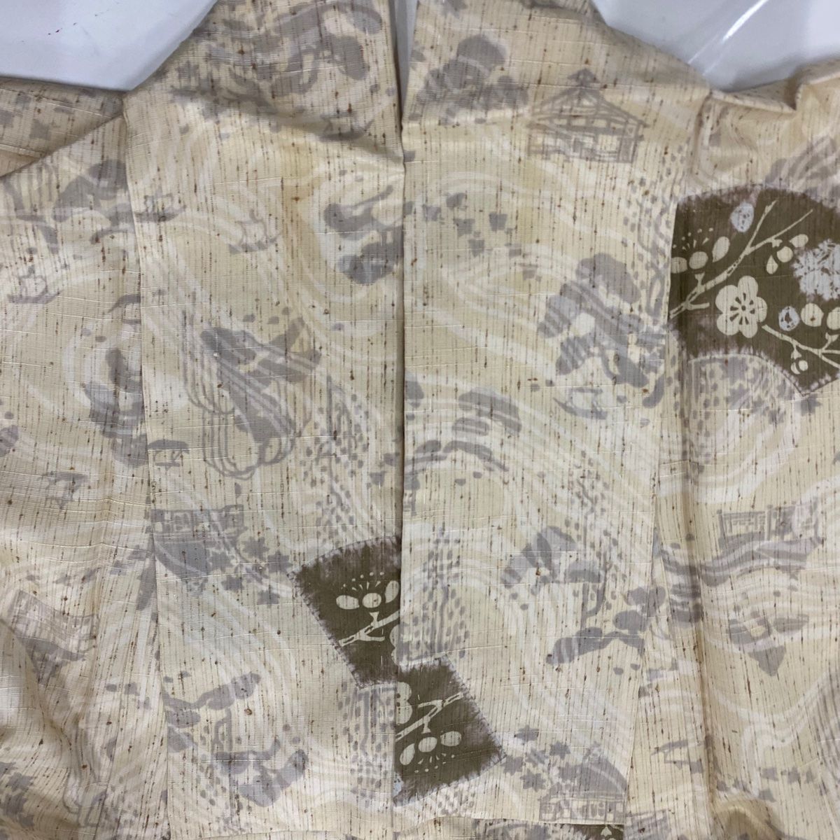 小紋 身丈170cm 裄丈67cm M 単衣 紬地 扇面 枝梅 ベージュ 正絹 秀品の検索結果