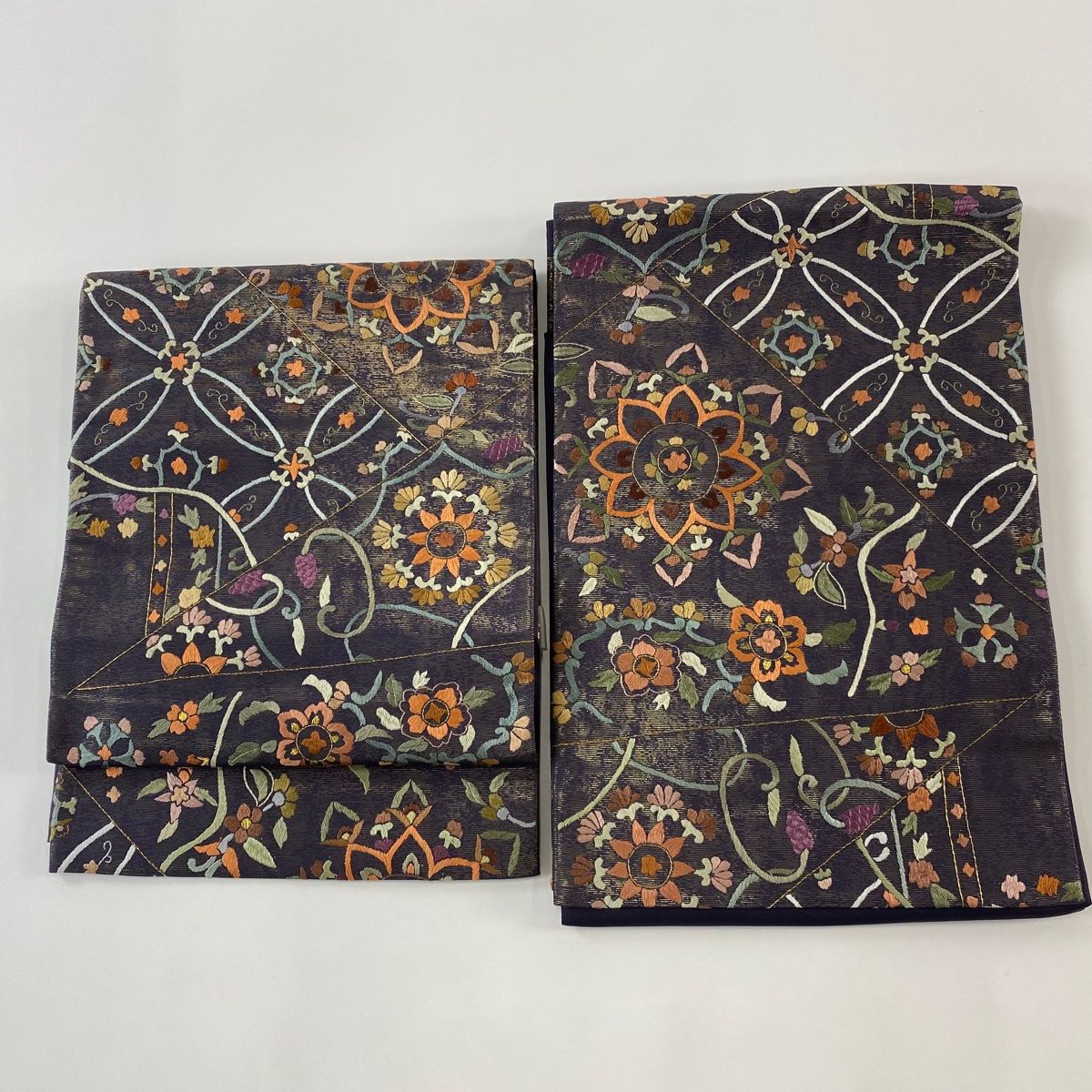 付け帯 秀品 作り帯 華文 草花 刺繍 金糸 濃紫 正絹 GLOBALQUALITYIMPORTS_COM