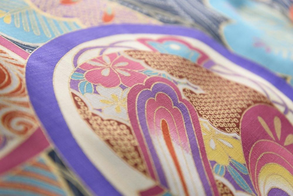 きもの道楽 セオα アンティーク調 丸紋 青 GLOBALQUALITYIMPORTS_COM