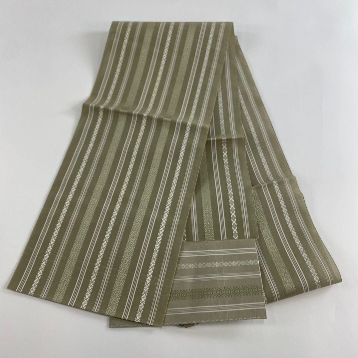 名古屋帯 秀品 夏帯 八寸名古屋帯 松葉仕立て 献上柄 灰緑 正絹 GLOBALQUALITYIMPORTS_COM