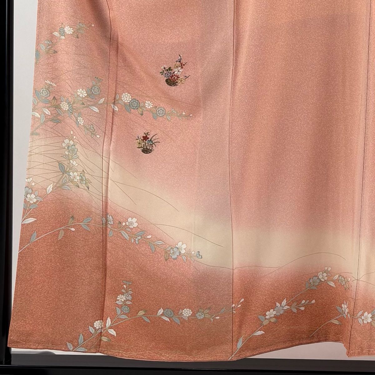 付下げ 身丈154.5cm 裄丈63cm S 袷 落款 花籠 芝 刺繍 金彩 ピンク 正絹 秀品の検索結果