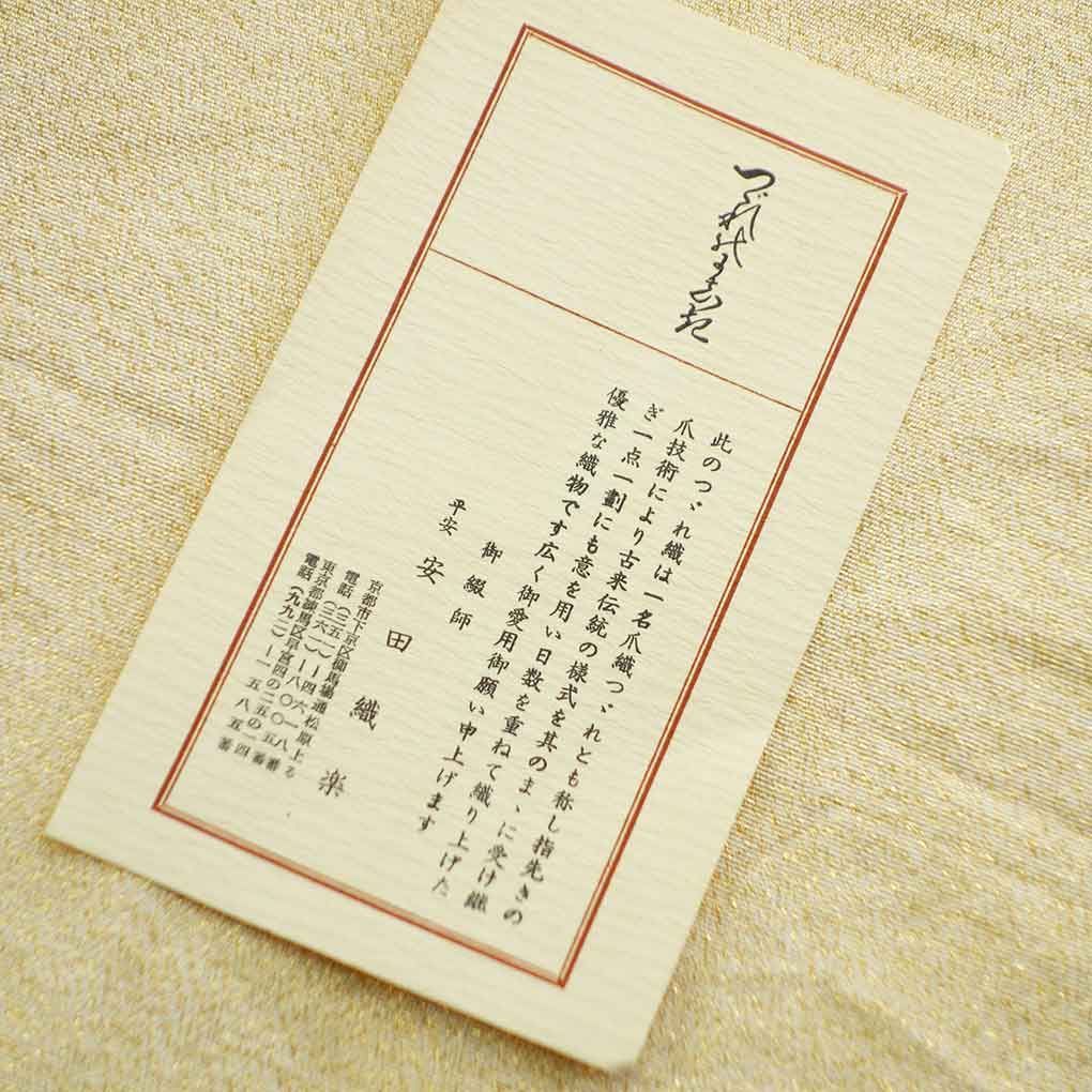 名古屋帯 幅30.5cm 長さ340cm レディース 鶴 秋冬春用 正絹 シルク ゴールド やや難 安田織楽 リメイク リユース リサイクル 呉服のきくや GLOBALQUALITYIMPORTS_COM