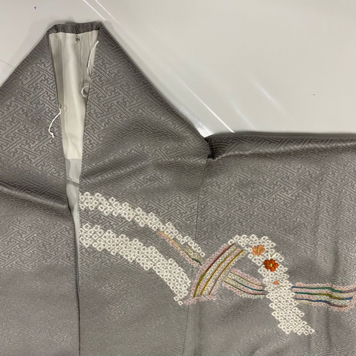 訪問着 身丈156.5cm 裄丈67cm M 袷 草花 幾何学模様 刺繍 金彩 灰色 正絹 秀品の検索結果