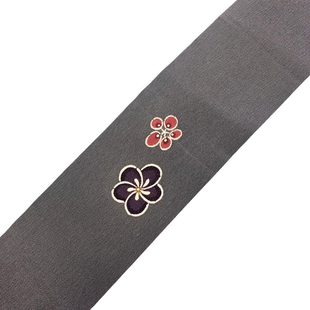 名古屋帯 型染 ねじり梅 花模様 鳩羽鼠色 縮緬 O-5507 GLOBALQUALITYIMPORTS_COM
