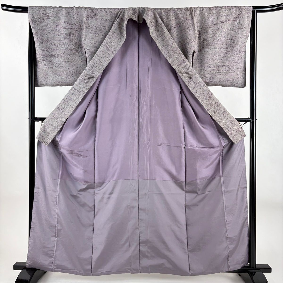小紋 身丈161cm 裄丈65.5cm M 袷 華文 流水 刺繍 灰紫 正絹 GLOBALQUALITYIMPORTS_COM