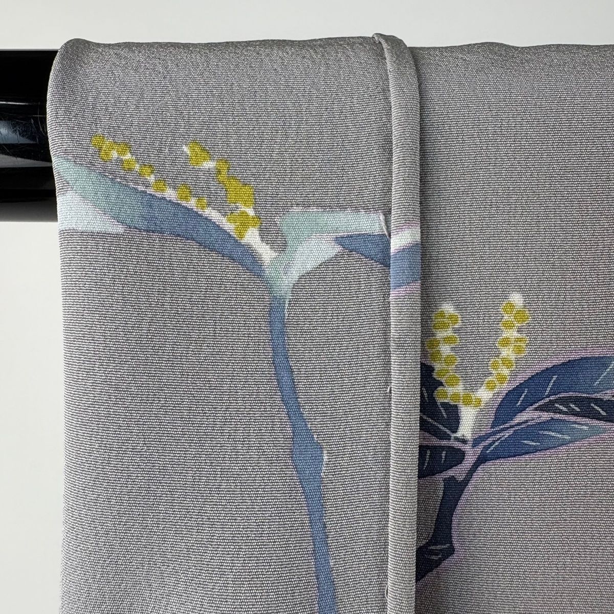 付下げ 身丈157.5cm 裄丈66.5cm M 単衣 由水煌人 落款 花 灰色 正絹の検索結果