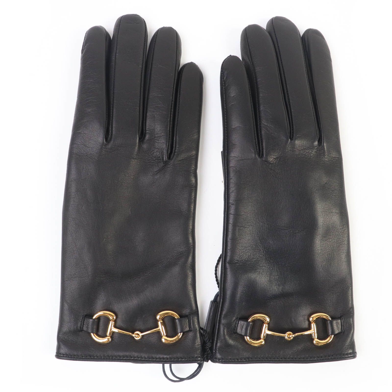 GUCCI グッチ 603635 ホースビット レザーグローブ 手袋 ブラック ゴールド金具 M 箱 保存袋付き イタリア製 レディース GLOBALQUALITYIMPORTS_COM