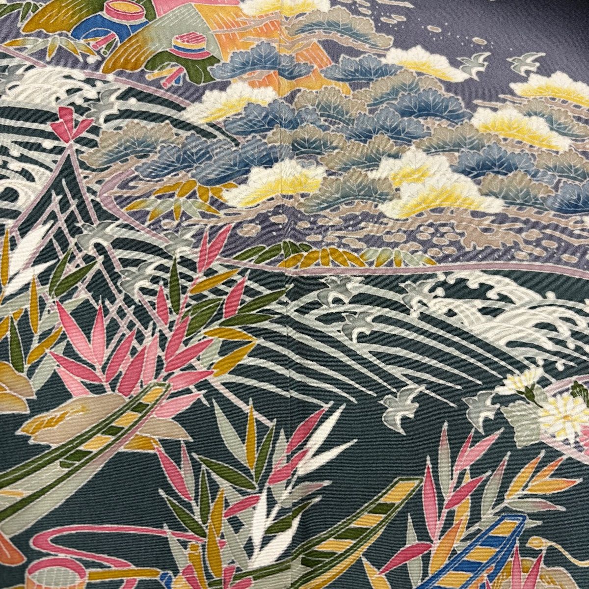 黒留袖 身丈163cm 裄丈66cm M 袷 落款 笠松 波 染め分け 黒 正絹 秀品の検索結果