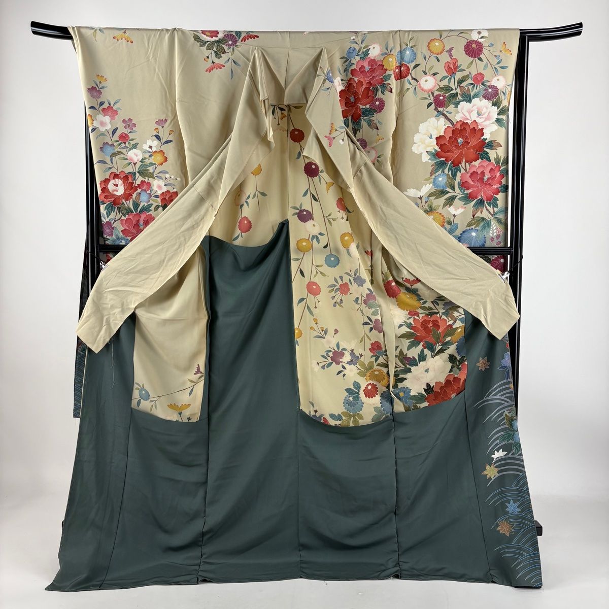 振袖 身丈181.5cm 裄丈69.5cm 未仕立て 仮絵羽 落款 牡丹 波 ぼかし 薄茶色 正絹の検索結果