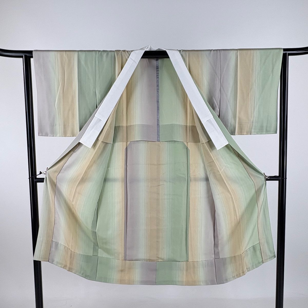 長襦袢 身丈123.5cm 裄丈63cm S 縦縞 ぼかし 薄緑 正絹 秀品の検索結果