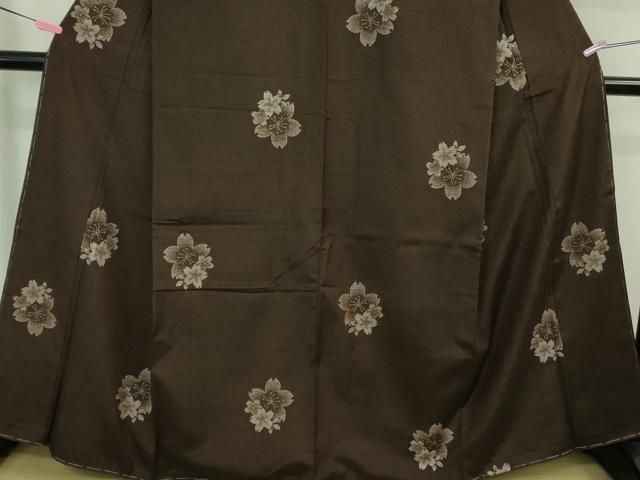 平和屋着物 上質な紬 単衣 地紙草花文 正絹 AABB2256fy