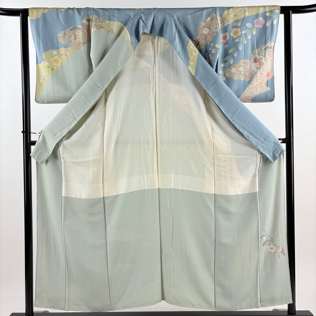 訪問着 身丈156cm 裄丈62cm S 袷 草花 流水 金彩 金糸 水色 正絹の検索結果